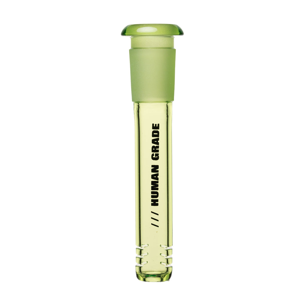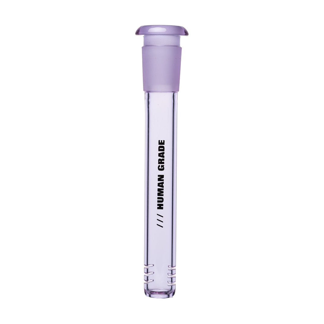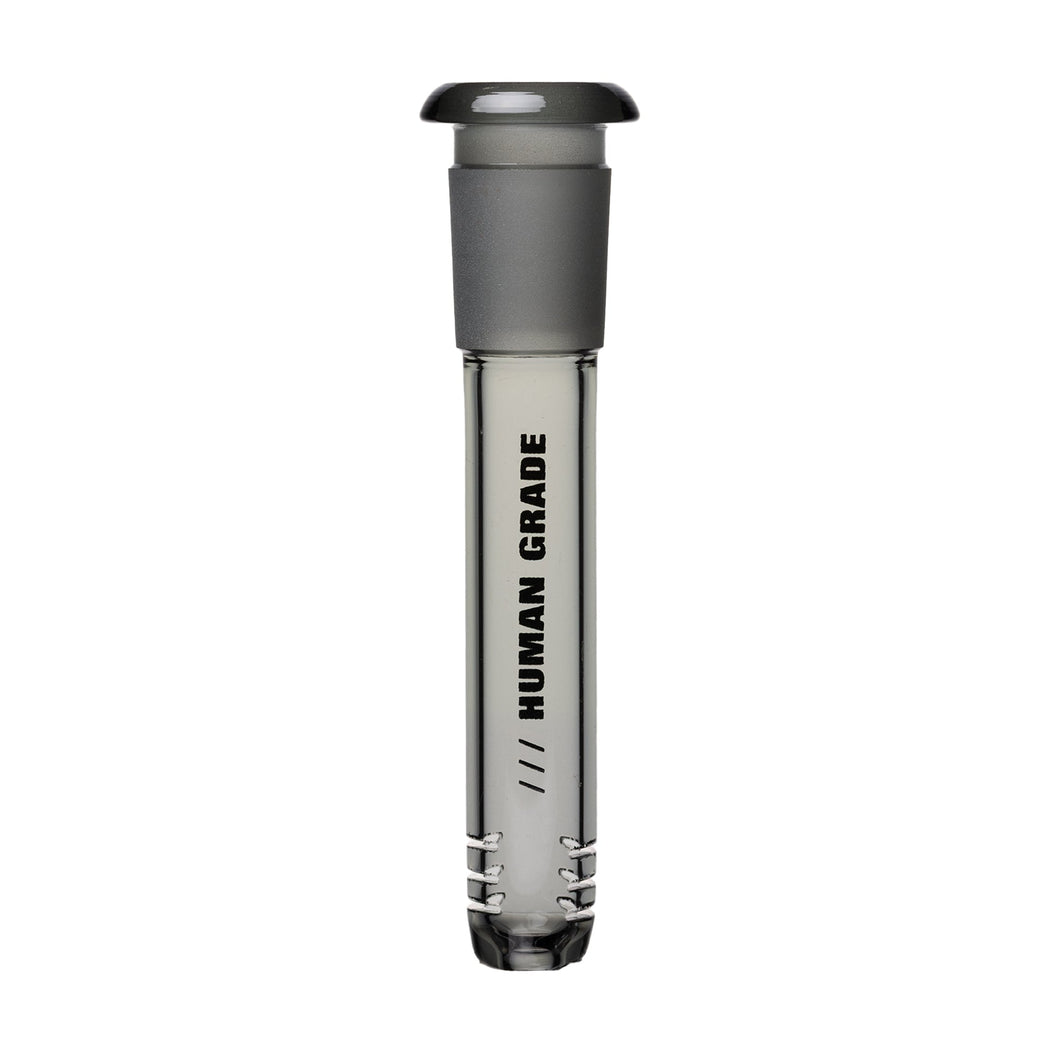 The Human Grade Downstem is a versatile and durable replacement, designed to fit any 14mm water pipe for a seamless experience. Available in multiple sizes, it ensures optimal airflow and filtration for smooth hits. Each package includes a printed ruler to help measure your downstem and joint size for the perfect fit.