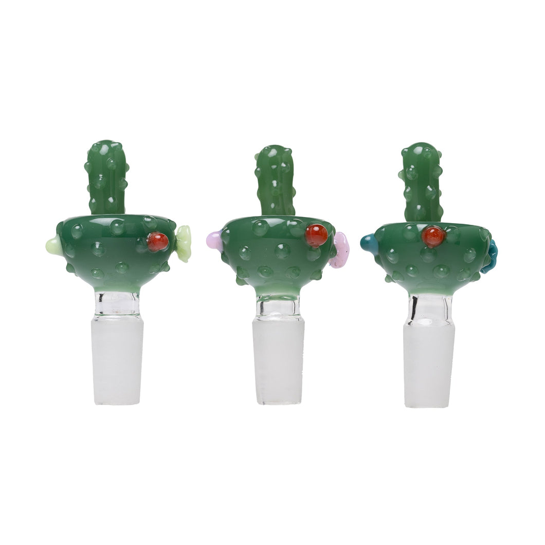 The Human Grade Novelty Bowl, available individually or in a pack of 3 with heart-shaped designs in pink, blue, and green, is shown side by side on a white background—perfect as a glass bong bowl for any 14mm water pipe.