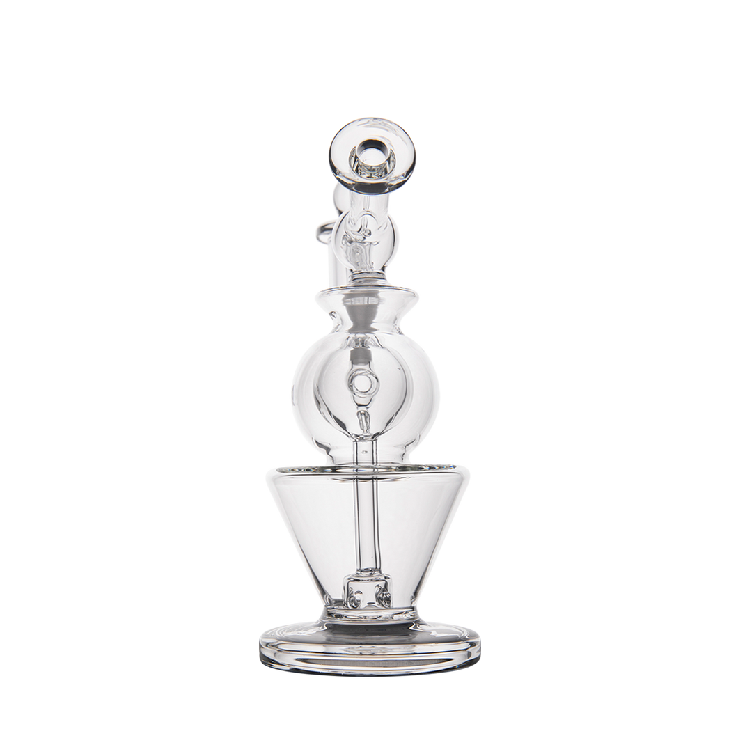 The Gemini is the perfect ice breaker to elevate an ordinary session with a sleek and elegant design that you'll want to show off. With its inverted cone base, this handcrafted beauty will turn heads when you're in the mood for company. It's made of high-quality borosilicate glass and features a flat bottom design.