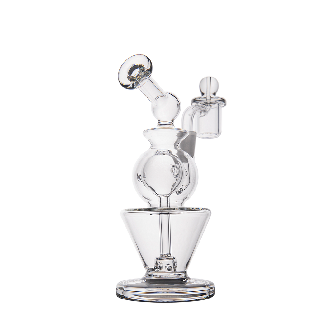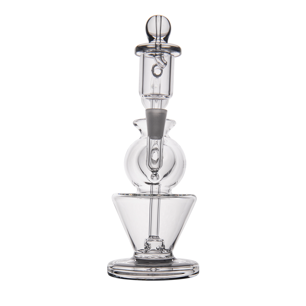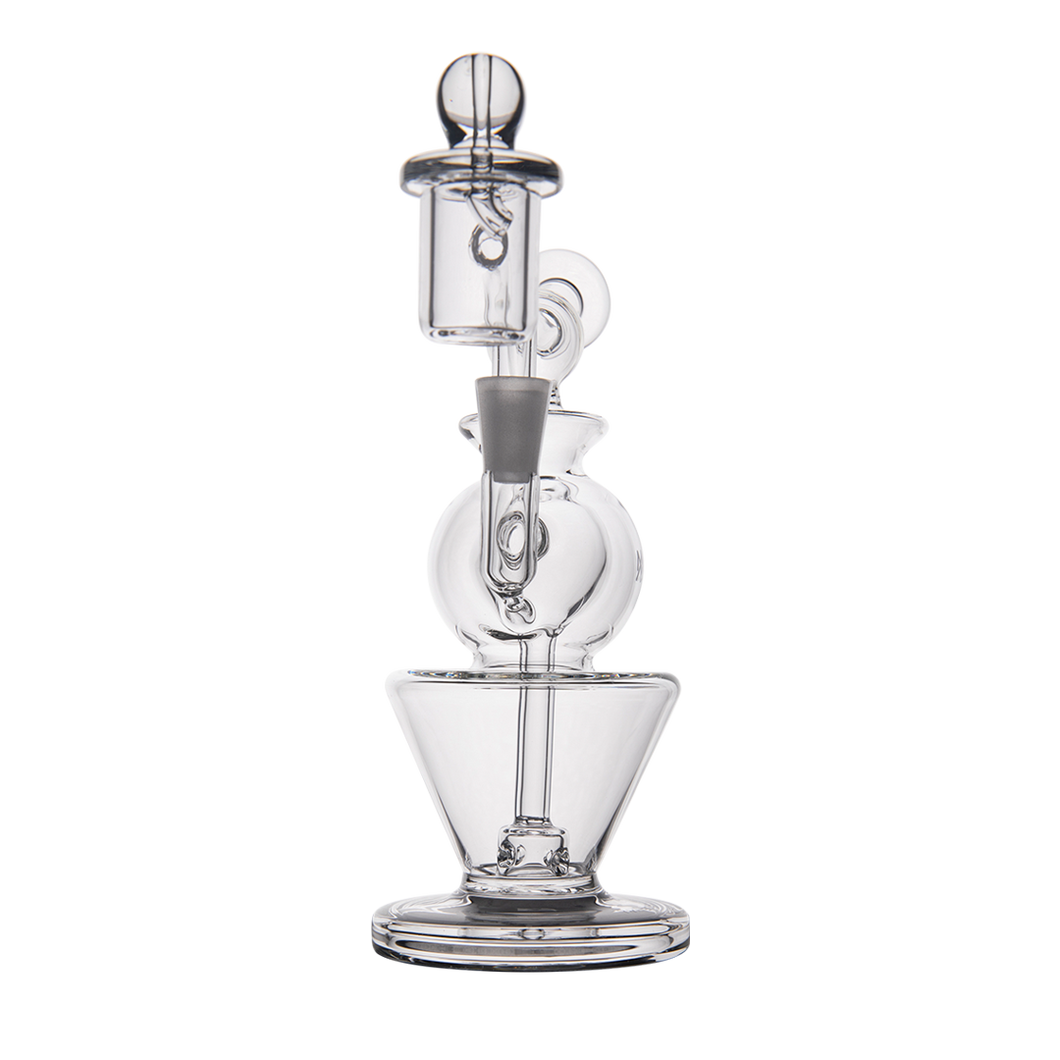 Innovative features include an inverted cone base for minimizing water volume while maximizing terpenes, and a double ball upper filtering system that ensures no vapor is lost. The rig comes with a splash guard to prevent messes, and an oil catch to keep your water clean.