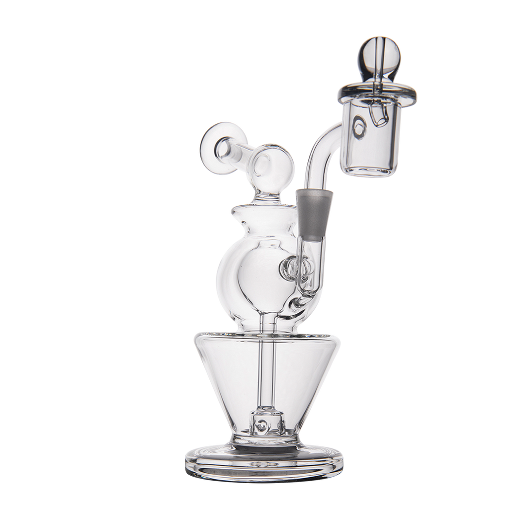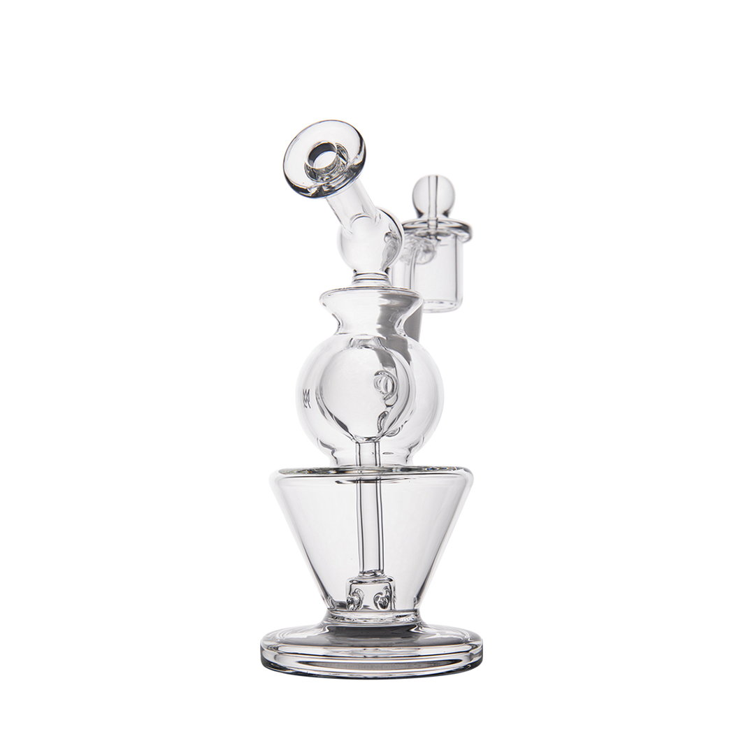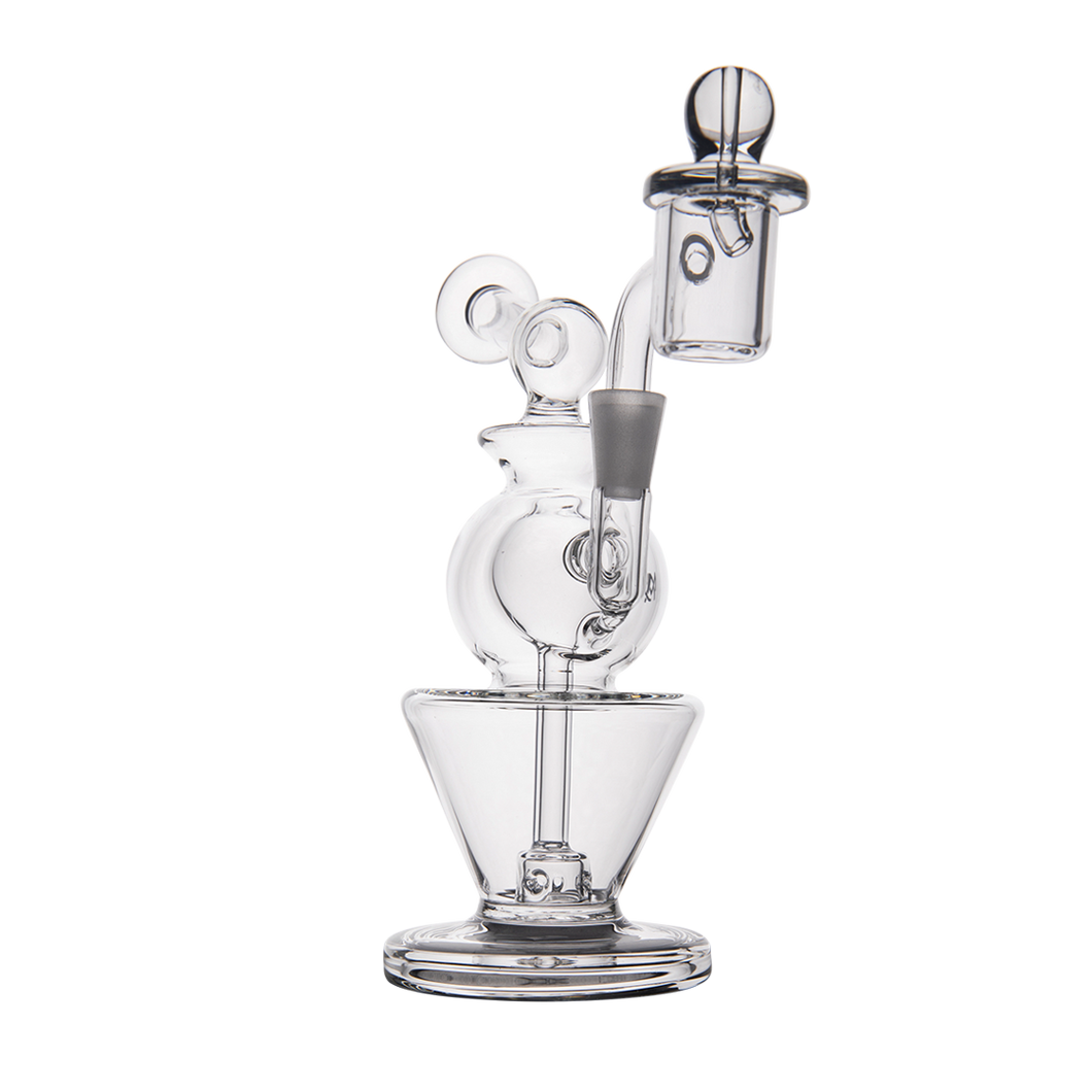 Innovative features include an inverted cone base for minimizing water volume while maximizing terpenes, and a double ball upper filtering system that ensures no vapor is lost. The rig comes with a splash guard to prevent messes, and an oil catch to keep your water clean.