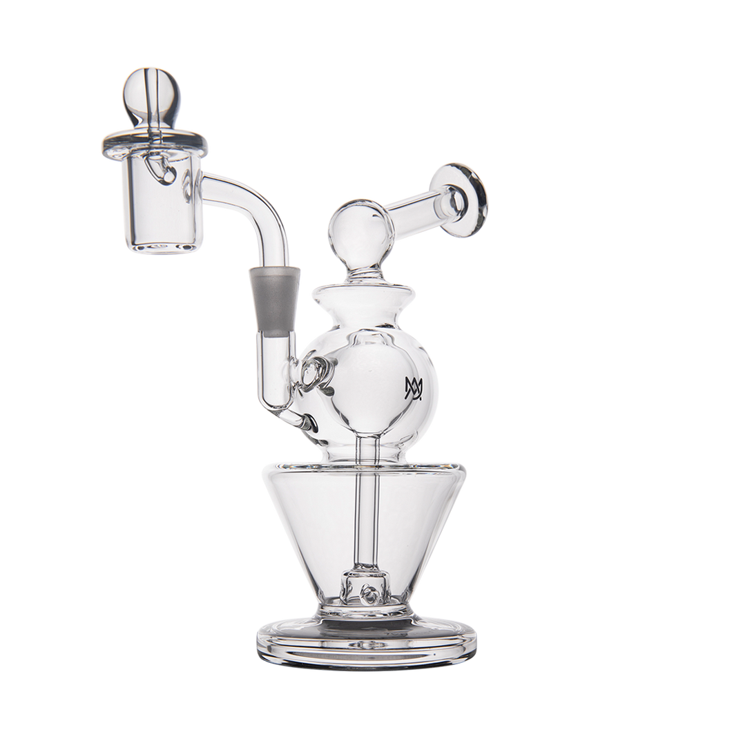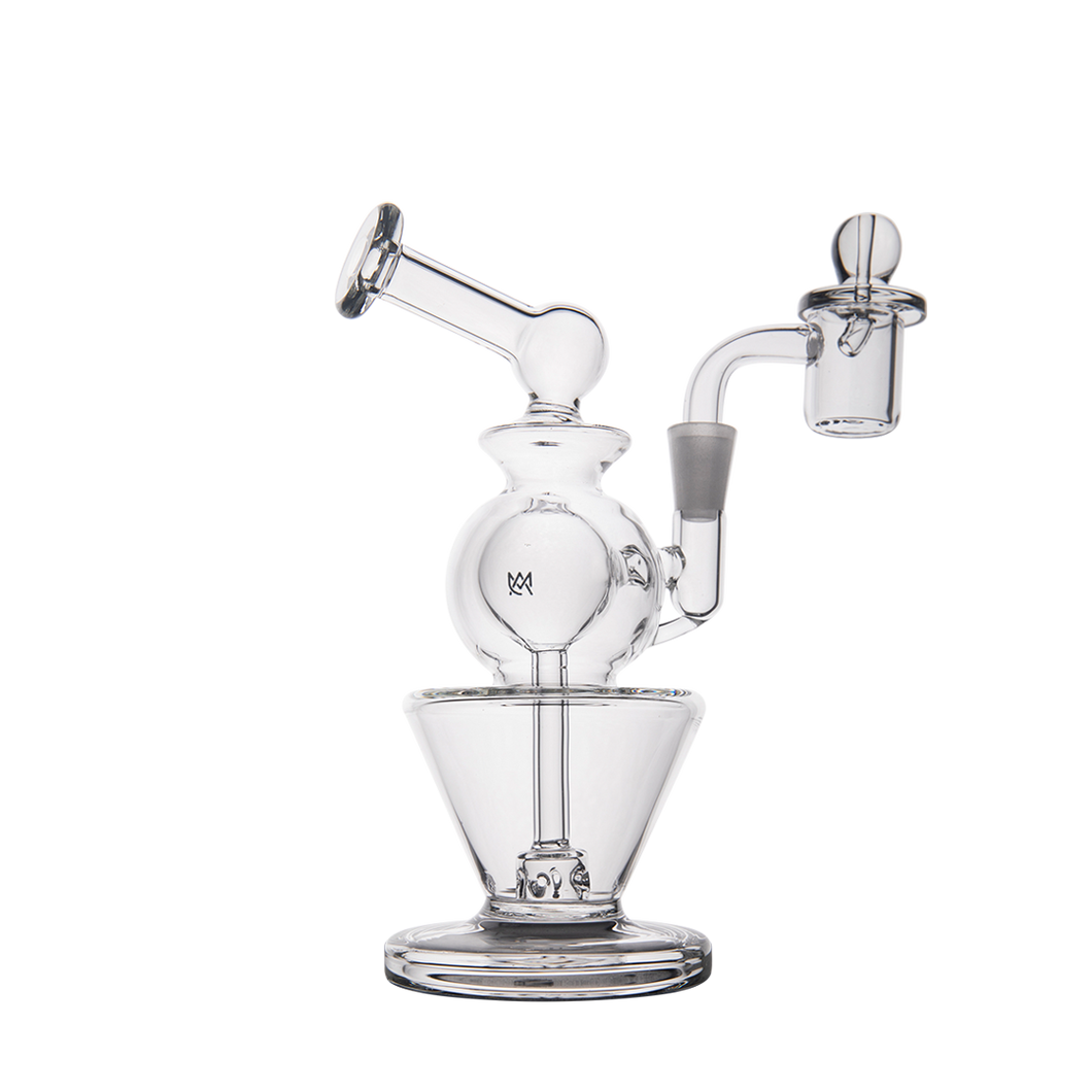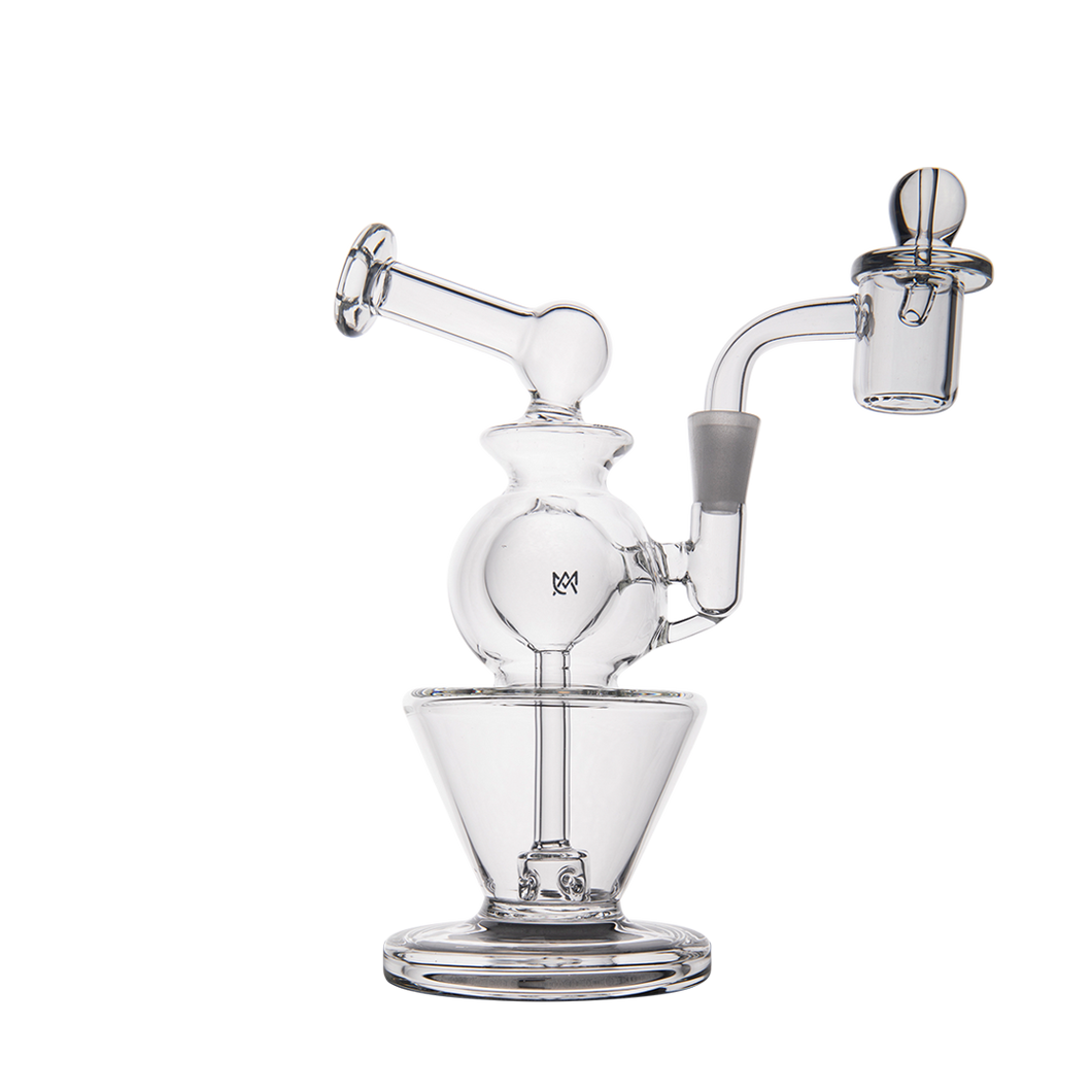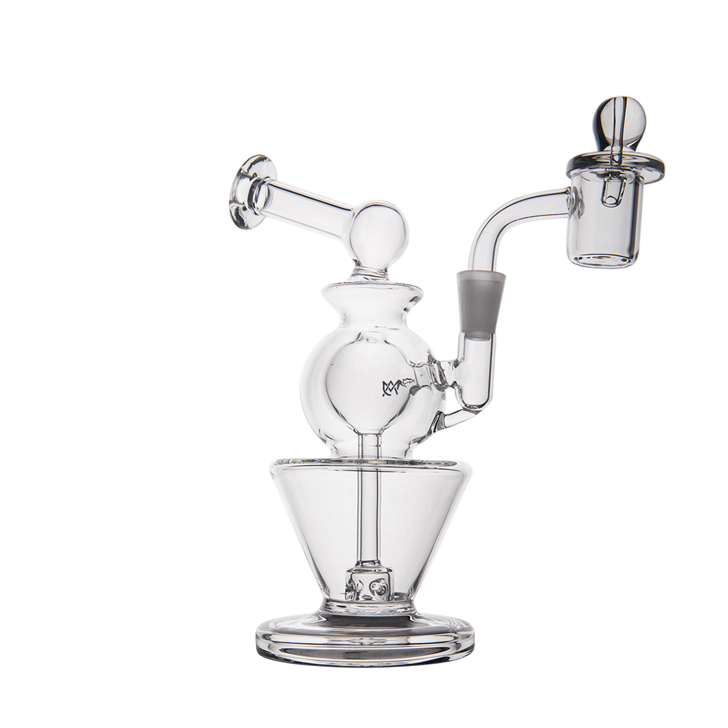 The Gemini Mini is very well balanced and our team has rigorously tested its durability. The flat bottom design guarantees that it stays sturdy and firm while you've got your quartz banger in place, even with a carb cap resting on top.