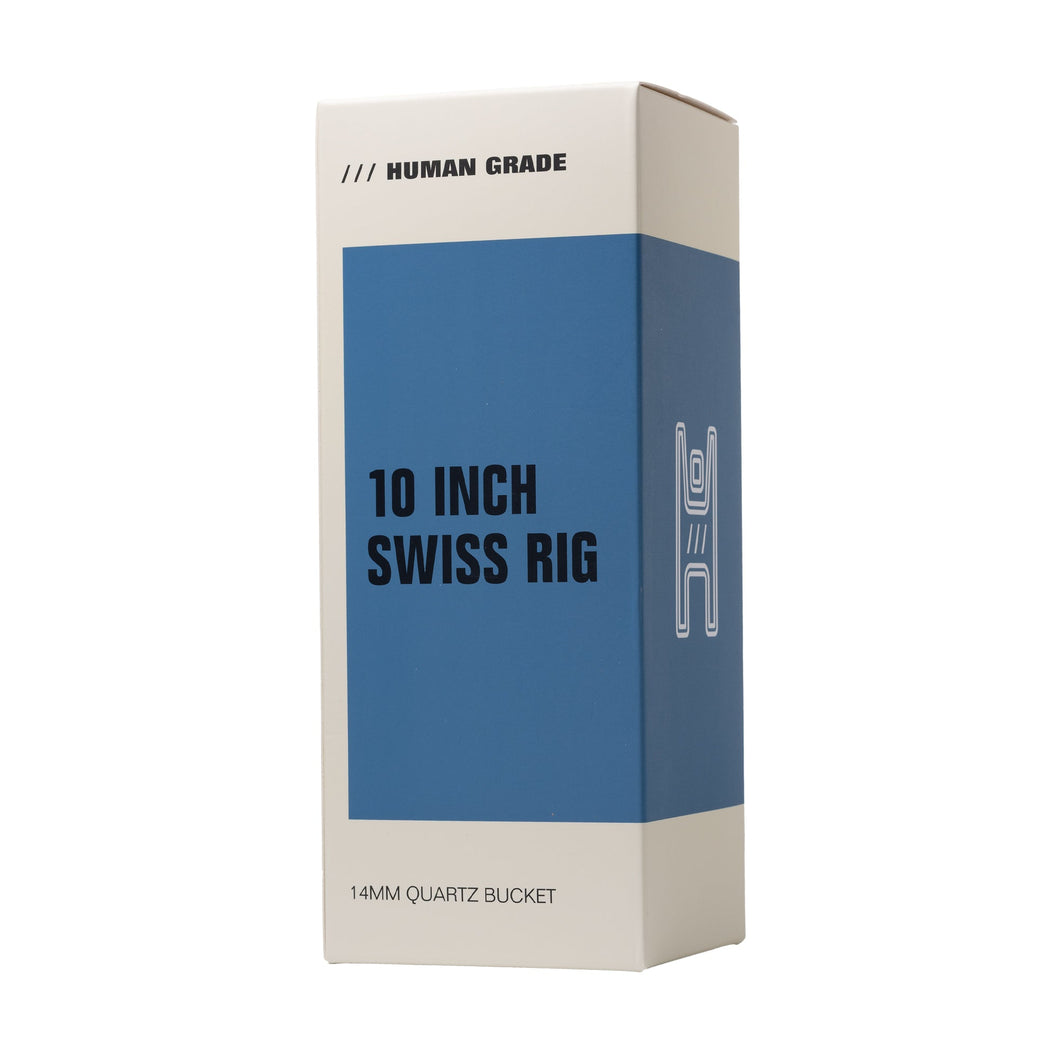 This 10-inch Swiss-styled water pipe combines precision engineering with artisanal craftsmanship. Constructed from premium borosilicate glass, it features a 14mm joint size and incorporates a colored percolator system designed to enhance filtration and cooling. The handmade design showcases distinctive colored accents throughout, reflecting traditional Swiss glassblowing techniques. This complete setup includes a human-grade quartz bucket and matching carb cap, delivering the quality and performance serious enthusiasts demand. Built to exacting standards for durability and optimal functionality.