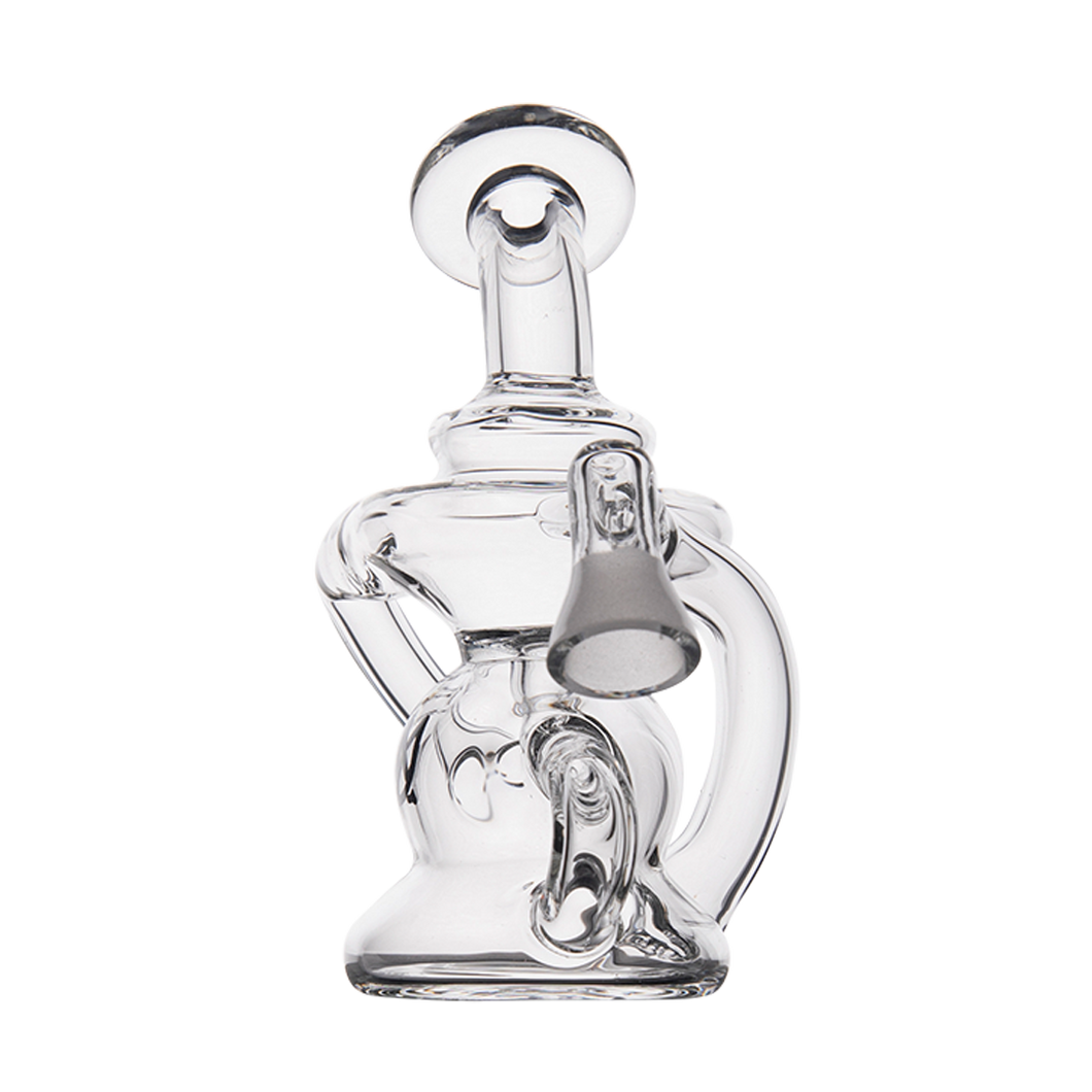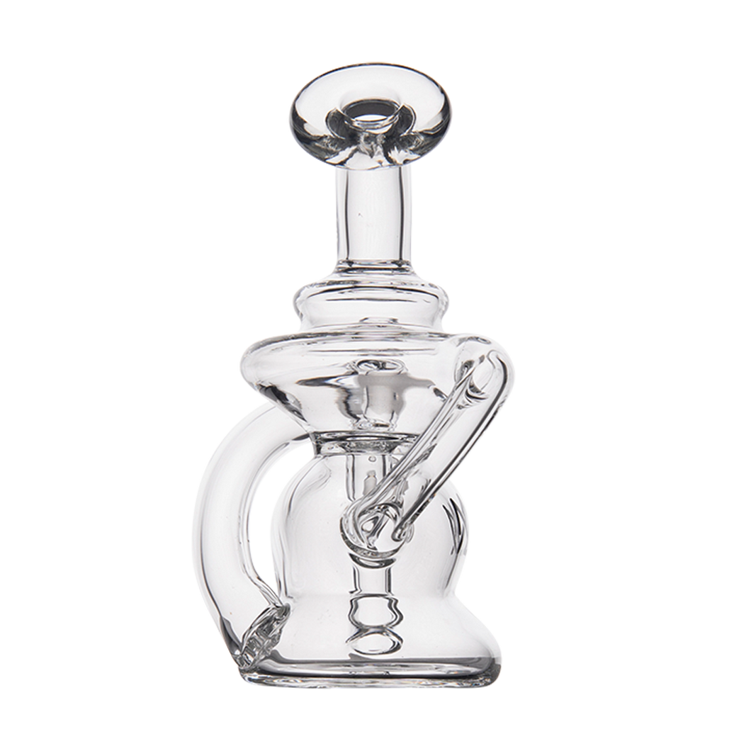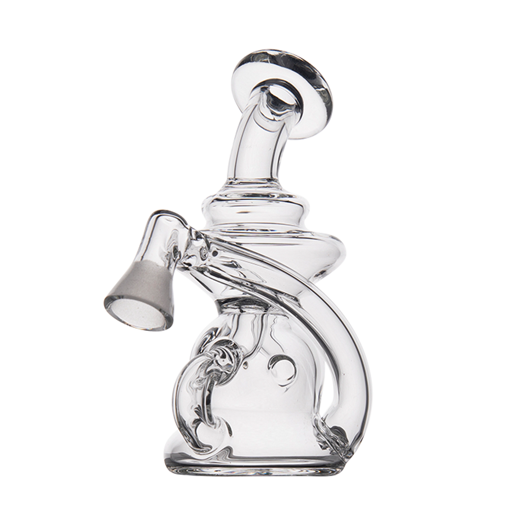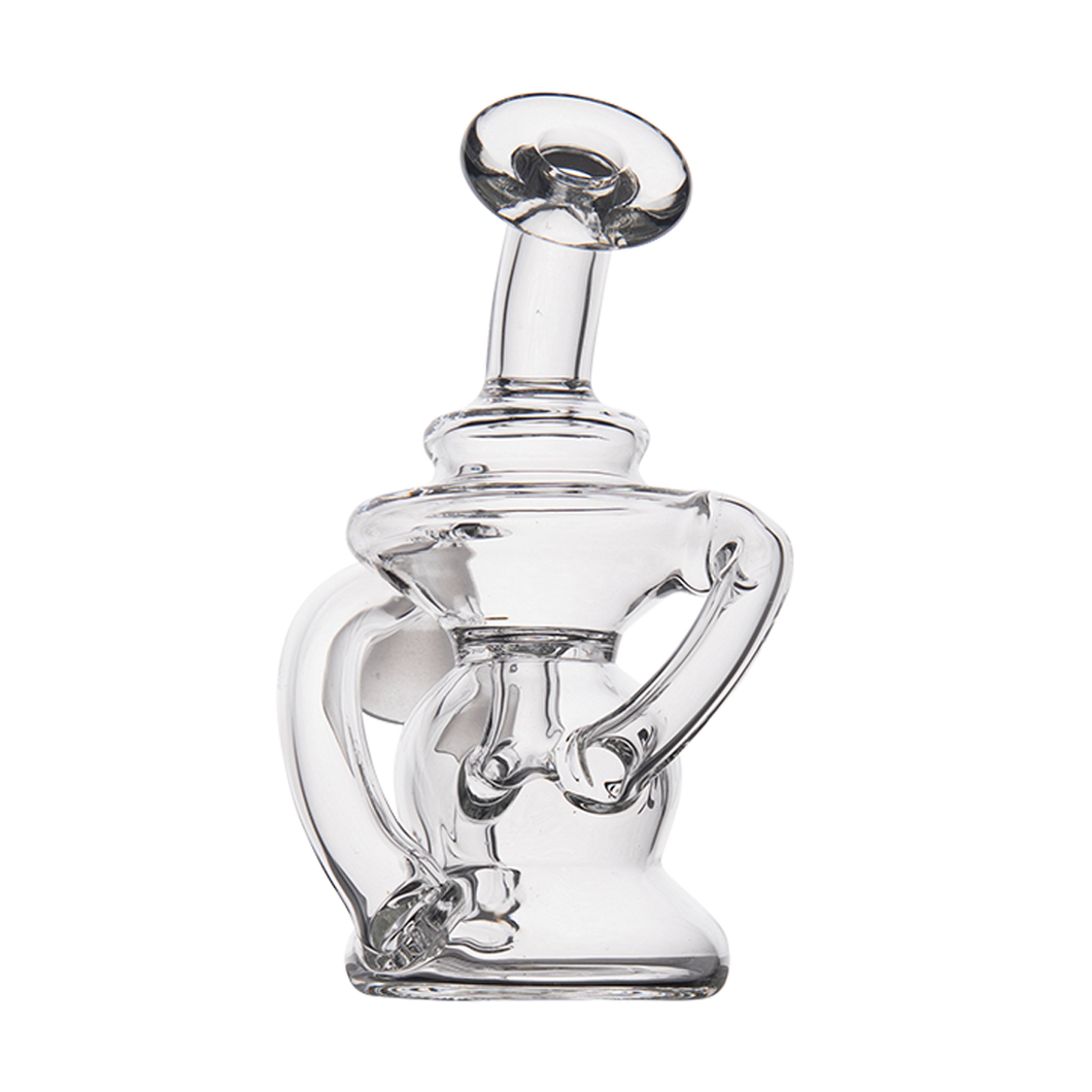 The versatile female spout caters to most circular tip vaporizers, seamlessly enhancing your vaporizer pen's functionality. Despite its small stature, the rig ensures substantial, flavorful hits with little drag through its multiple filtration tubes and dual-intake recycler mechanism. This innovative design guarantees a splash-free, pleasant vaping session.