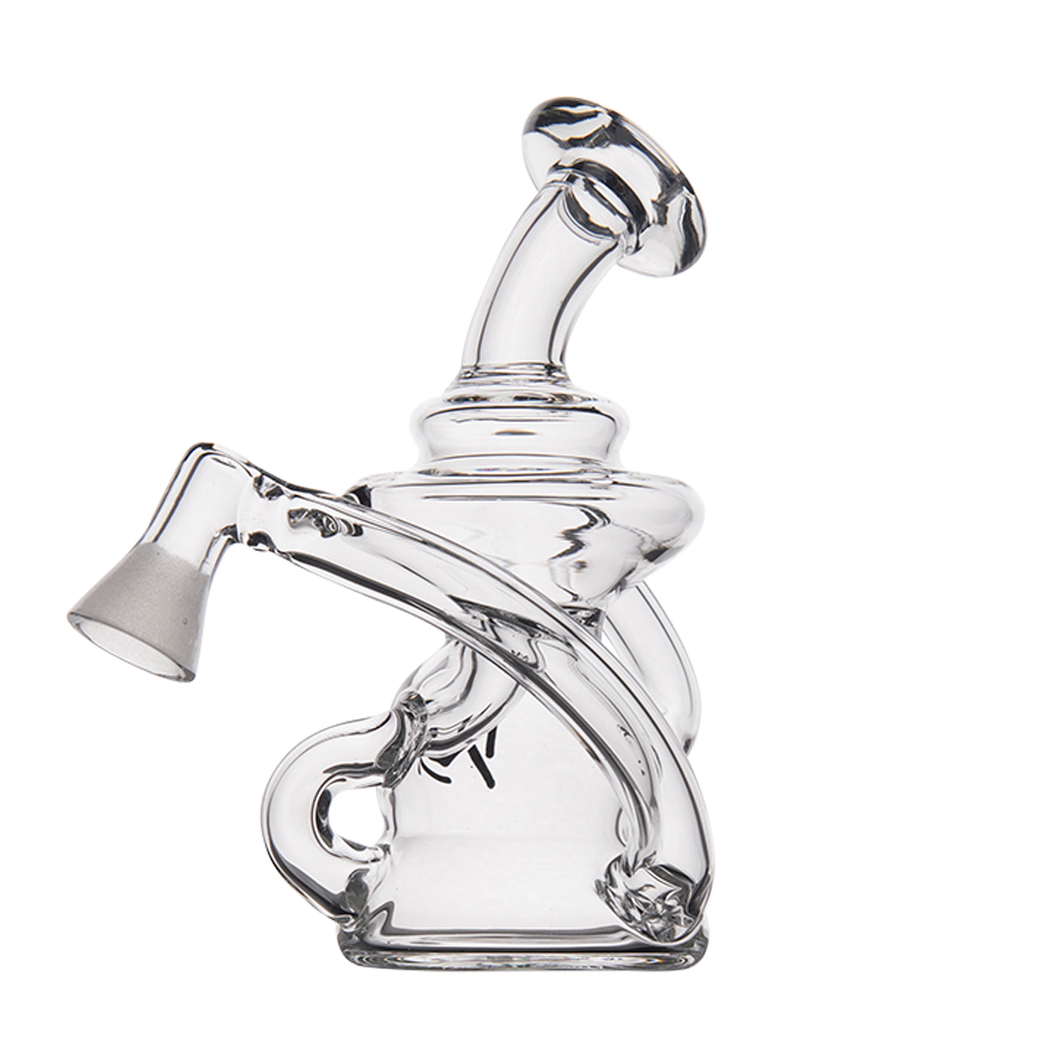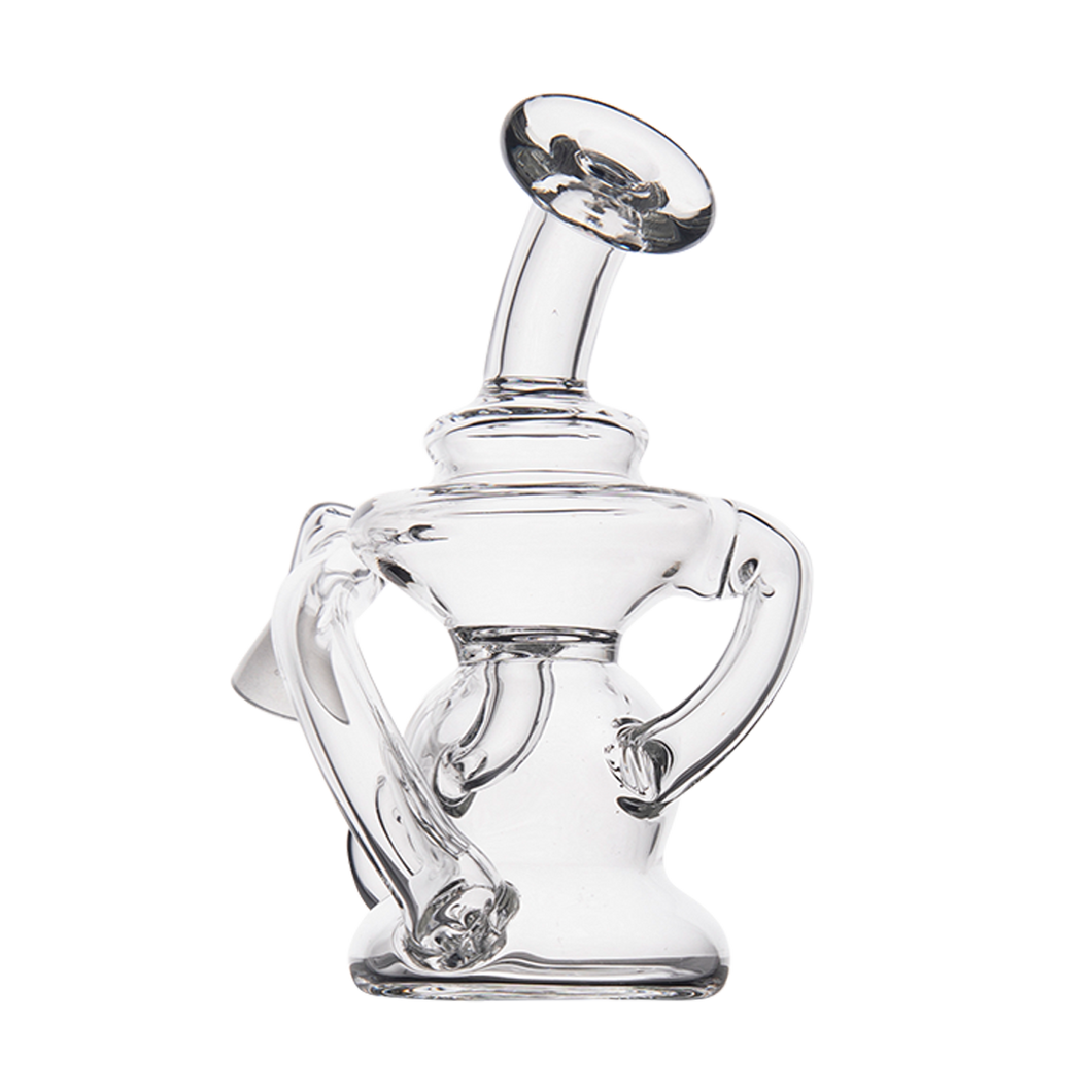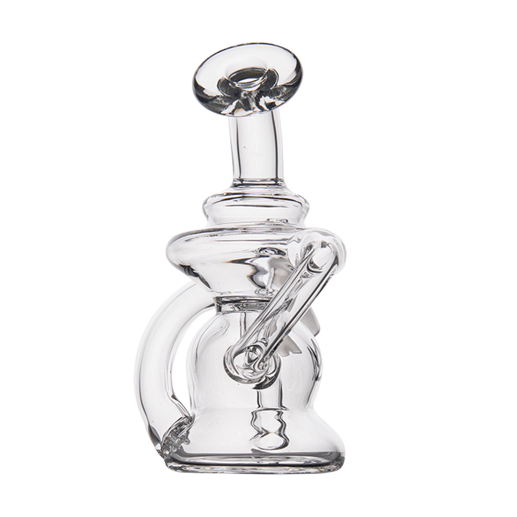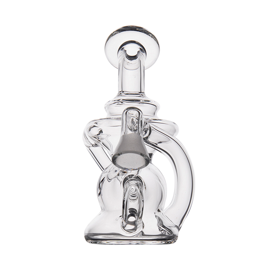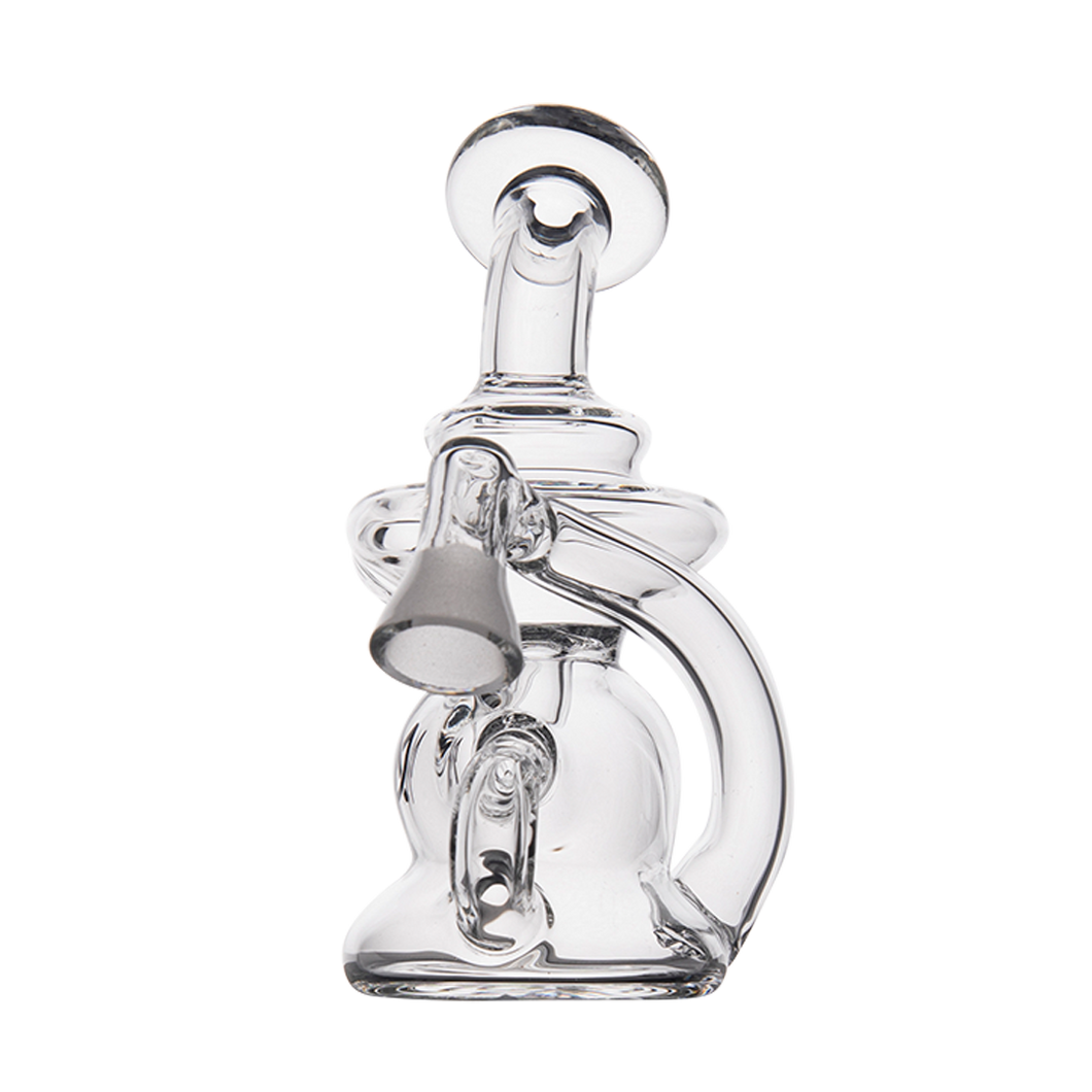 The versatile female spout caters to most circular tip vaporizers, seamlessly enhancing your vaporizer pen's functionality. Despite its small stature, the rig ensures substantial, flavorful hits with little drag through its multiple filtration tubes and dual-intake recycler mechanism. This innovative design guarantees a splash-free, pleasant vaping session.