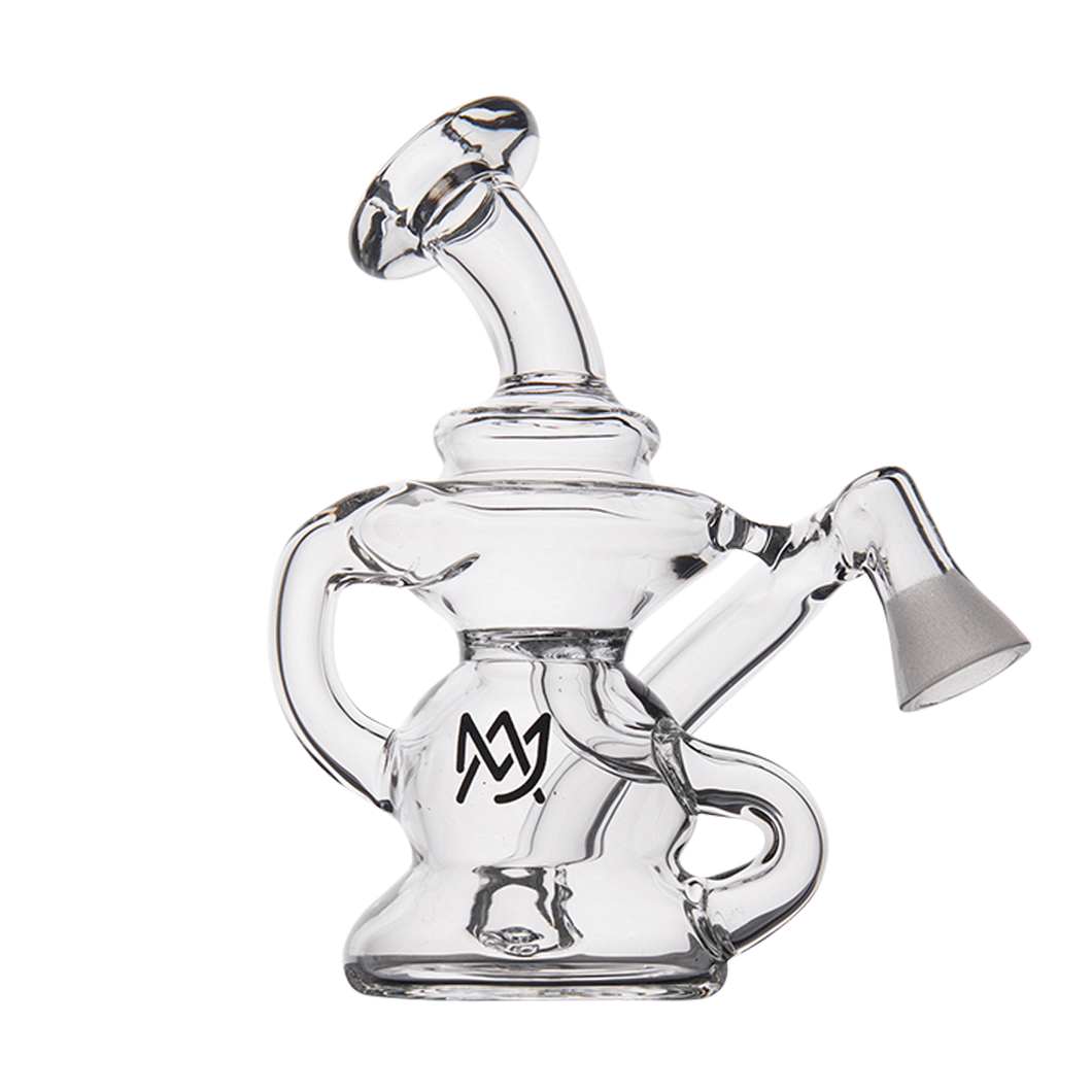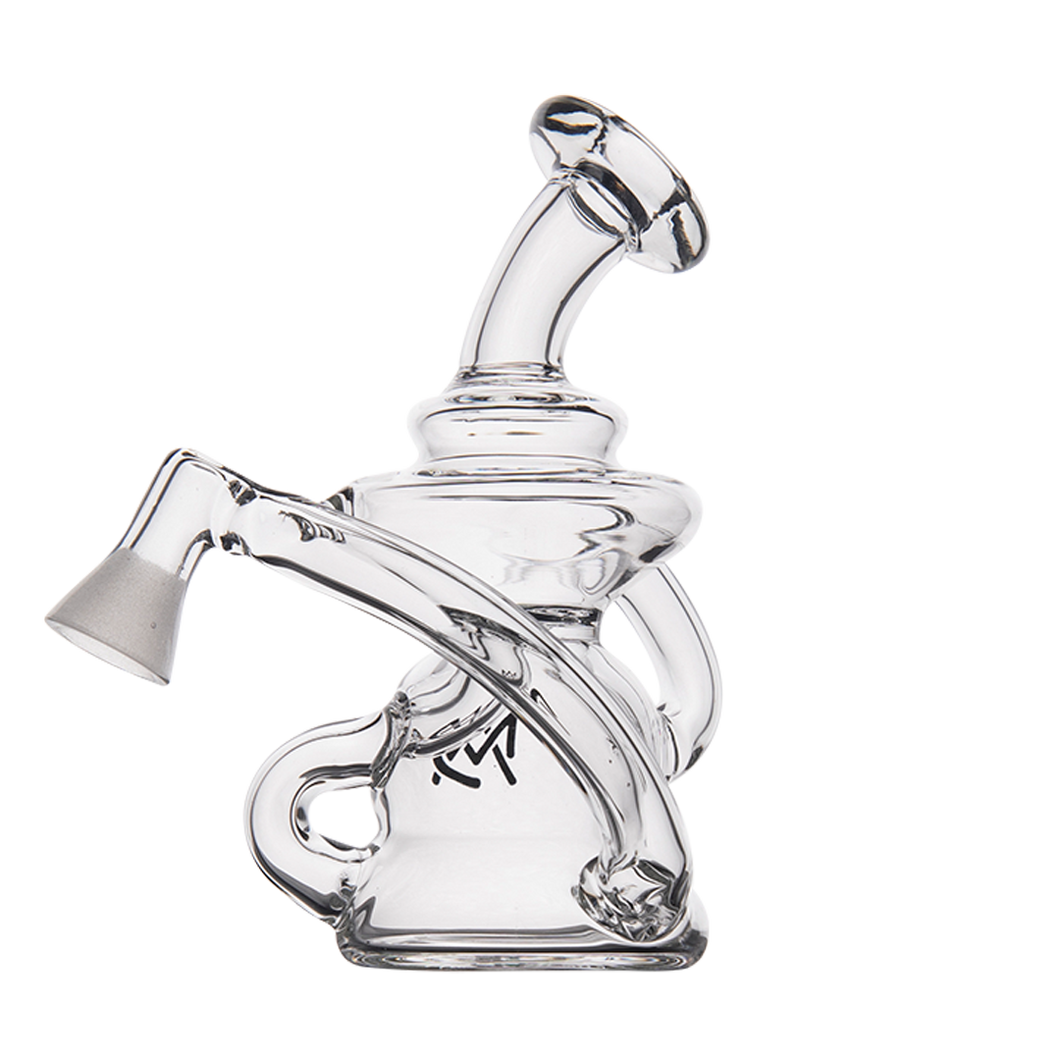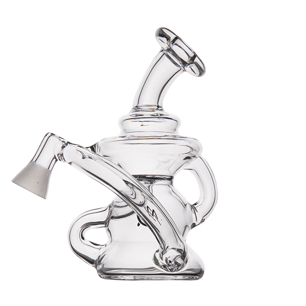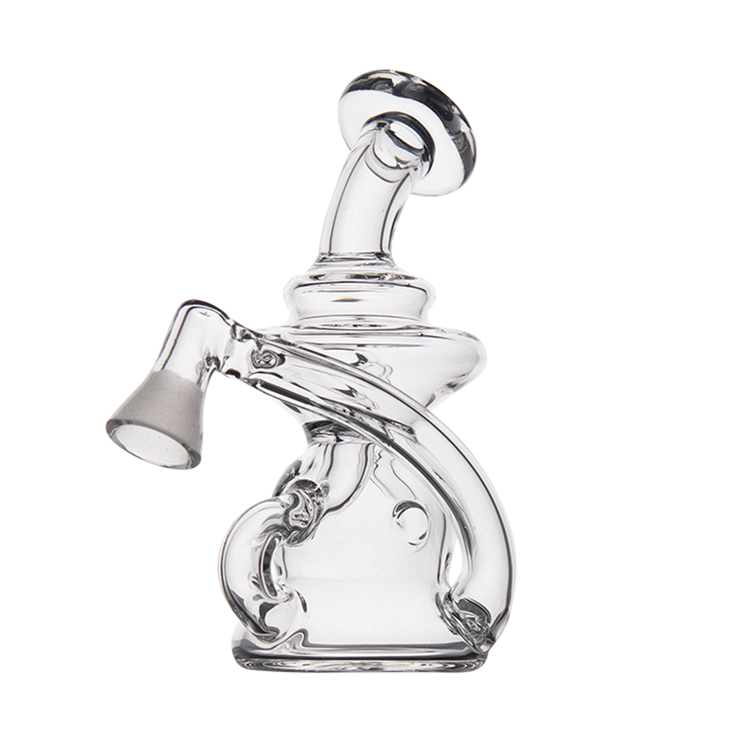 The versatile female spout caters to most circular tip vaporizers, seamlessly enhancing your vaporizer pen's functionality. Despite its small stature, the rig ensures substantial, flavorful hits with little drag through its multiple filtration tubes and dual-intake recycler mechanism. This innovative design guarantees a splash-free, pleasant vaping session.